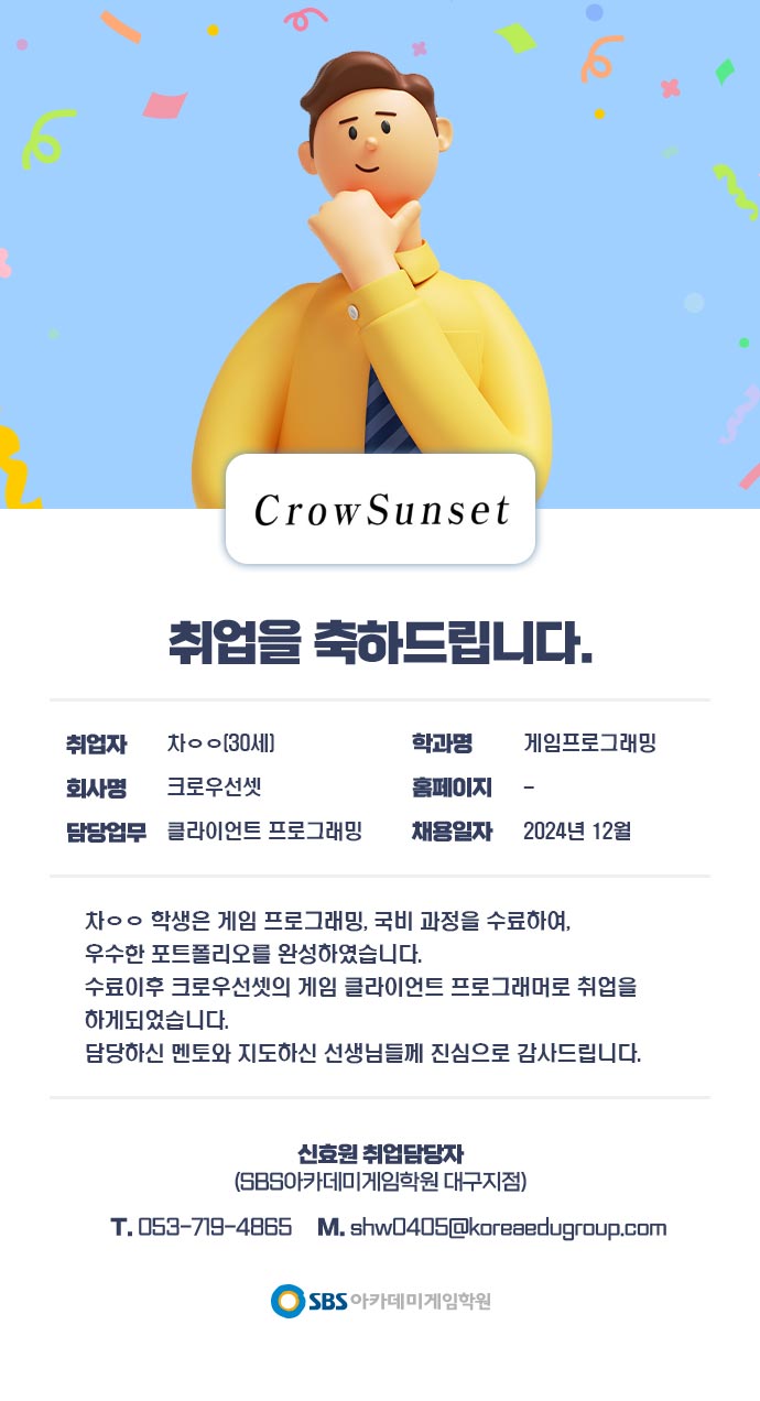 ※ 현재 SBS아카데미게임학원은 개인정보를 제3자에게 제공하지 않습니다.